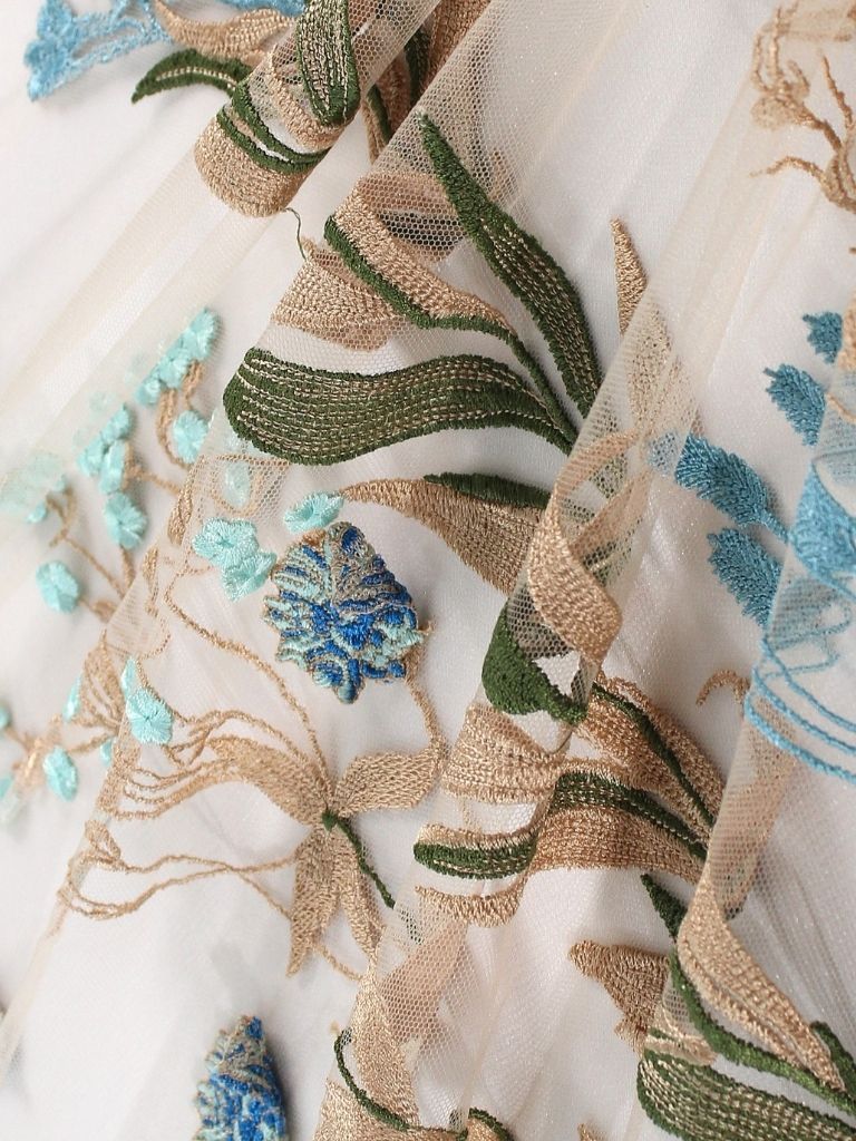 Discover our exquisite collection of blue embroidered tulle fabrics, available by the yard for all your creative projects. We offer a stunning variety of shades, including elegant navy blue embroidered tulle fabric, sophisticated dark blue embroidered fabric, and vibrant royal blue embroidered tulle fabric. Find the perfect material for your next masterpiece today.