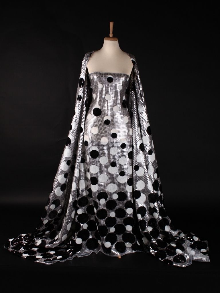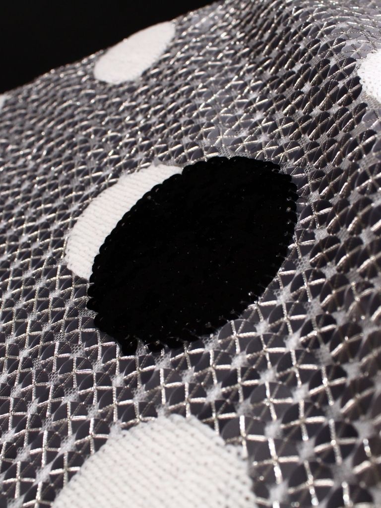Silver tulle fabric with rich sequin work for a glamorous and shiny appearance. Perfect for standout evening dresses