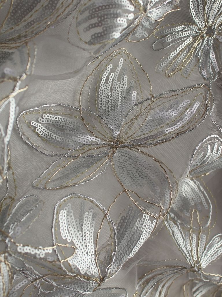 % 8 TULLE NYLON – % 5 POLYESTER THREAD – % 6 RAYON – % 7 NYLON THREAD -% 49 SEQ POLYESTER – % 10 CORD % 15 METALLIC SEQUINS CORD